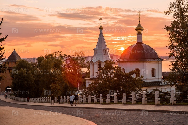 Церковь Симеона Столпника и Белая башня на закате. Нижегородский Кремль. Россия, Нижний Новгород, август 2023 г