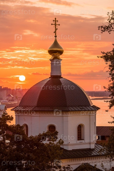 Церковь Симеона Столпника и Белая башня на закате. Нижегородский Кремль. Россия, Нижний Новгород, август 2023 г