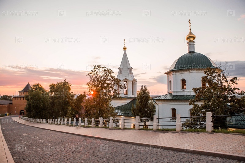 Церковь Симеона Столпника и Белая башня на закате. Нижегородский Кремль. Россия, Нижний Новгород, август 2023 г