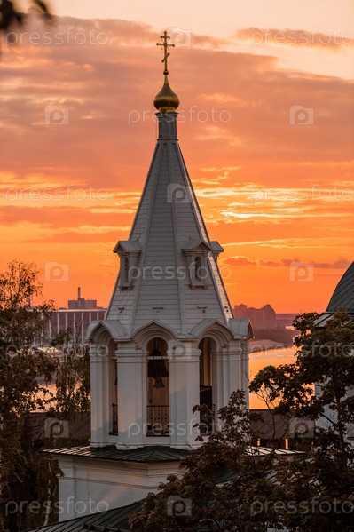 Церковь Симеона Столпника и Белая башня на закате. Нижегородский Кремль. Россия, Нижний Новгород, август 2023 г