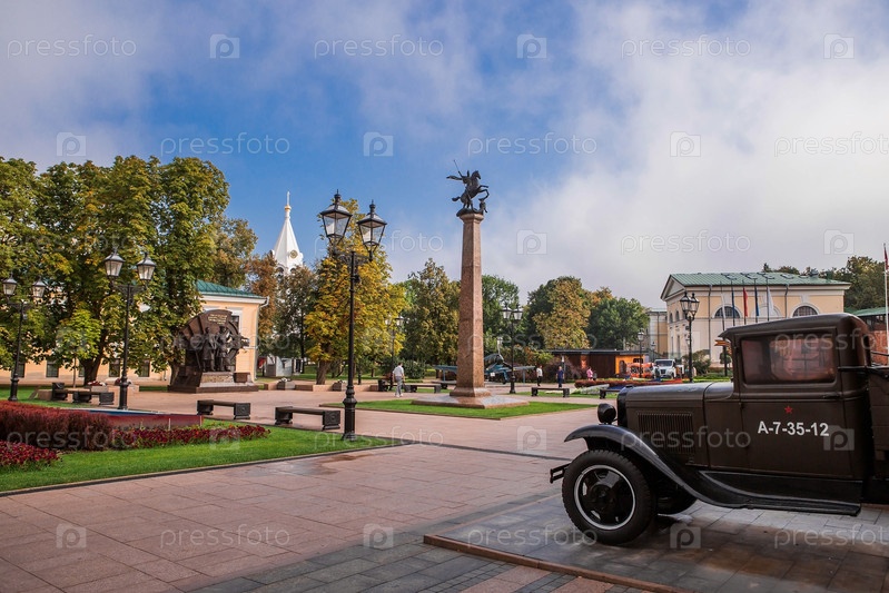 Памятник защитникам Родины и Музей военной техники в Кремле. Россия, Нижегородский Кремль, Нижний Новгород, август 2023 г