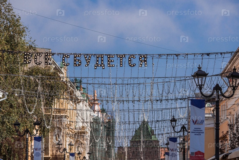Большая Покровская улица в Нижнем Новгороде в солнечный летний день. Россия, Нижний Новгород, август 2023 г