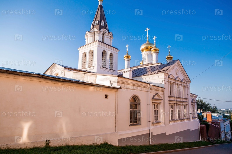 Вид на храм пророка Илии с Ильинской горы в Нижнем Новгороде. Россия, Нижний Новгород, август 2023 г