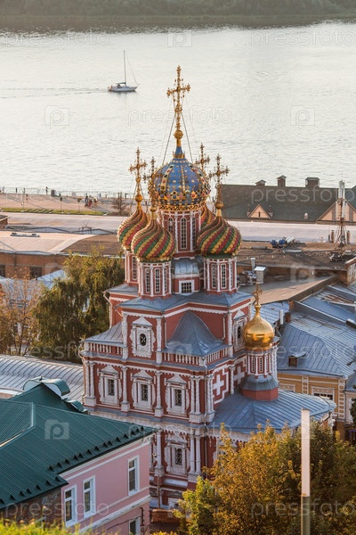 Религия и культура. Церковь Рождества Христова на закате, вид с холма. Россия, Нижний Новгород, август 2023 г