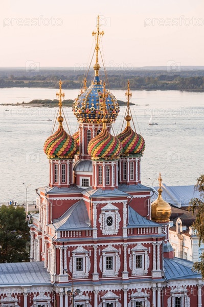 Религия и культура. Церковь Рождества Христова на закате, вид с холма. Россия, Нижний Новгород, август 2023 г