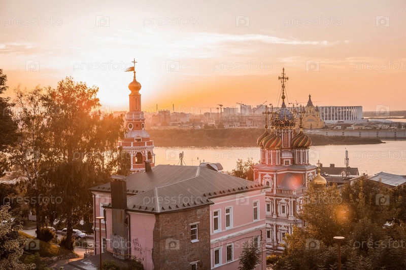 Религия и культура. Церковь Рождества Христова на закате, вид с холма. Россия, Нижний Новгород, август 2023 г
