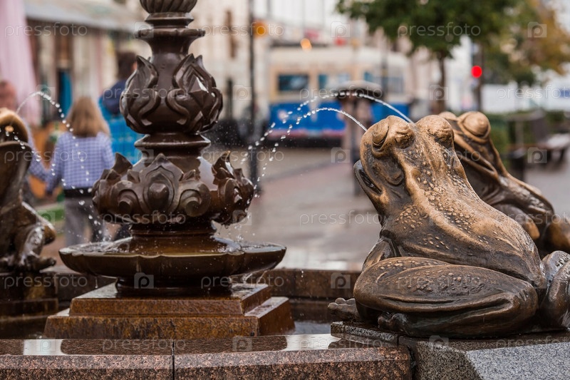 Фонтан с лягушками на пешеходной улице Баумана в Казани. Россия, Республика Татарстан, г. Казань, сентябрь 2023 г