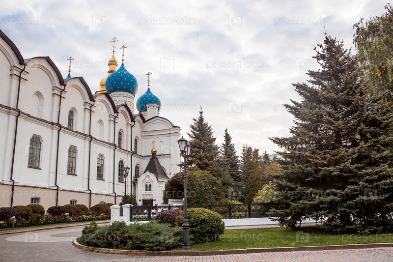 Православная церковь Казанского Кремля на закате. Благовещенский собор на территории Кремля. Республика Татарстан, Казань, сентябрь 2023 г
