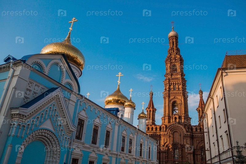 Богоявленский собор и колокольня на улице Баумана. Казань, Республика Татарстан, Россия, сентябрь 2023 г