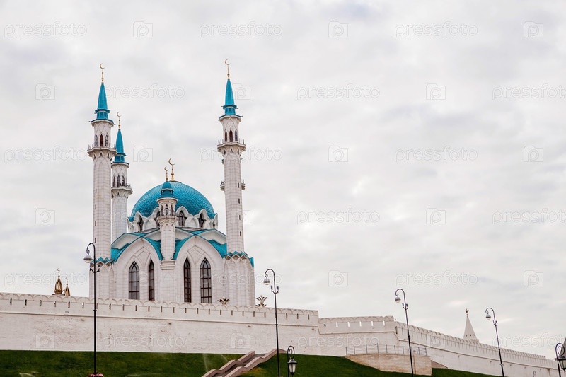 Главная достопримечательность города Казани. Мечеть Кул Шариф на фоне утреннего неба. Кремль. Раннее утро. Город Казань, Республика Татарстан, Россия, сентябрь 2023 г