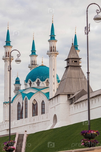 Главная достопримечательность города Казани. Мечеть Кул Шариф на фоне утреннего неба. Кремль. Раннее утро. Город Казань, Республика Татарстан, Россия, сентябрь 2023 г