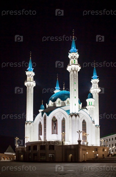 Главная достопримечательность города Казани. Мечеть Кул Шариф ночью. Казанский Кремль. Город Казань, Республика Татарстан, Россия, сентябрь 2023 г