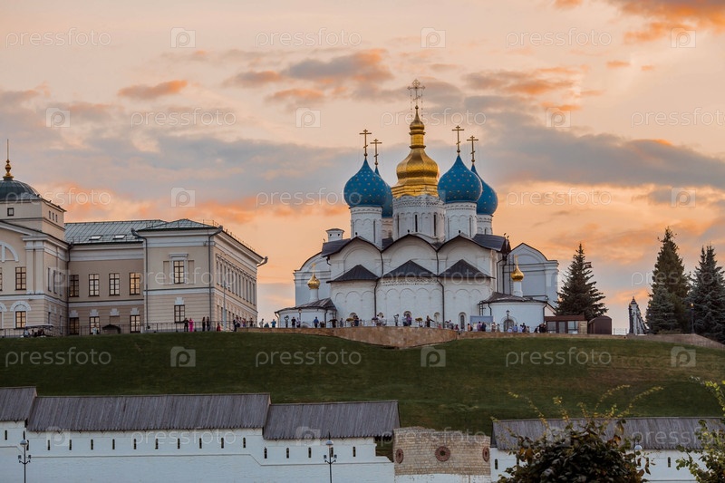 Православная церковь Казанского Кремля на закате. Благовещенский собор на территории Кремля. Республика Татарстан, Казань, сентябрь 2023 г