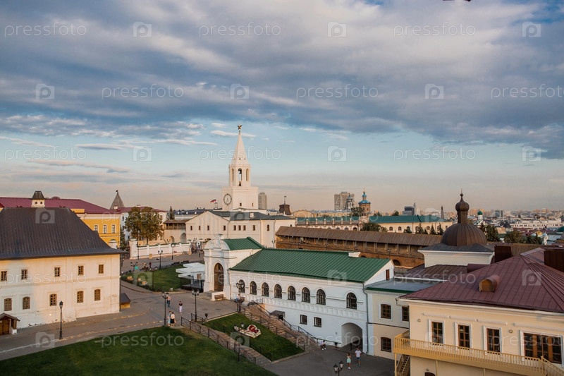 Спасская башня Казанского кремля. Солнечный летний вечер. Казань. Республика Татарстан. Россия, сентябрь 2023 г