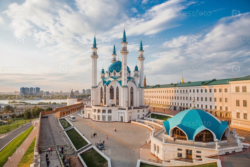 Главная достопримечательность города Казани. Мечеть Кул Шариф на фоне прекрасного неба. Кремль. Город Казань, Республика Татарстан, Россия, сентябрь 2023 г
