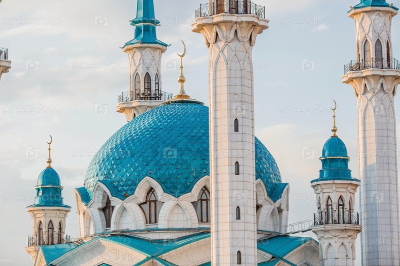 Главная достопримечательность города Казани. Мечеть Кул Шариф на фоне прекрасного неба. Кремль. Город Казань, Республика Татарстан, Россия, сентябрь 2023 г