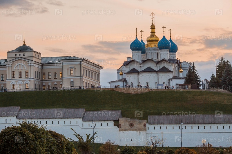Православная церковь Казанского Кремля на закате. Благовещенский собор на территории Кремля. Республика Татарстан, Казань, сентябрь 2023 г