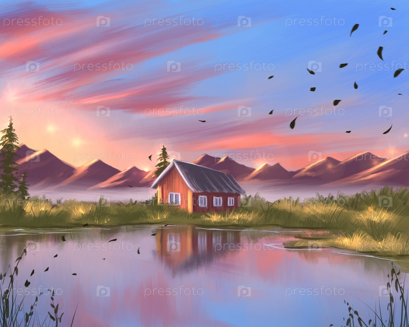 Одинокий дом на закате