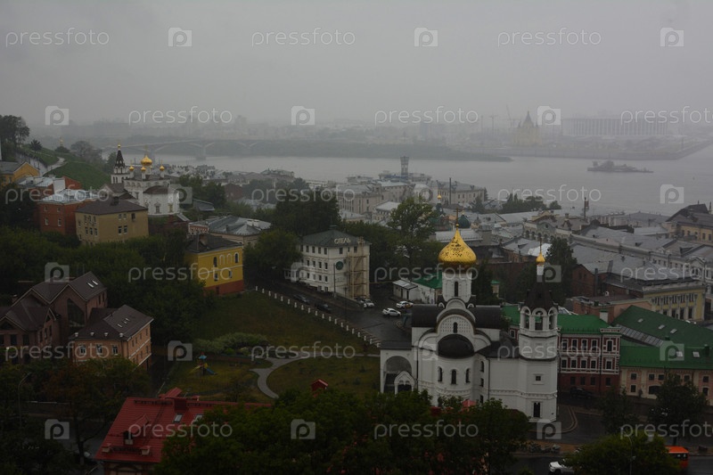 Вид с Кремлевской стены в Нижнем Новгороде, Россия. Казанская церковь