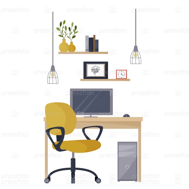 Иллюстрация современного офисного рабочего пространства. Рабочее место. Кабинет. Домашний офис
