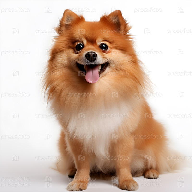 Немецкий шпиц сидит на белом фоне