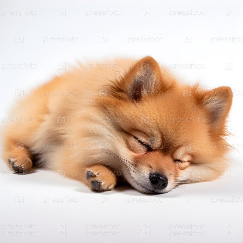Немецкий шпиц спит на белом фоне