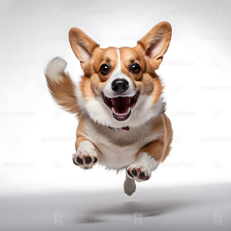 Корги собака бежит на белом фоне