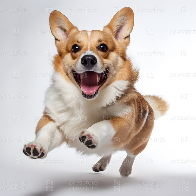Корги собака бежит на белом фоне