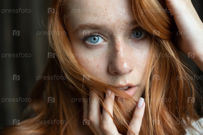 Портрет молодой красивой женщины с рыжими волосами в студии