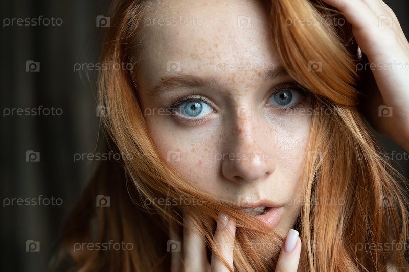 Портрет молодой красивой женщины с рыжими волосами в студии