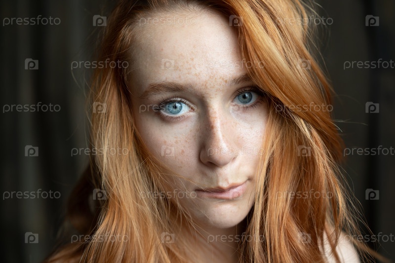 Портрет молодой красивой женщины с рыжими волосами в студии