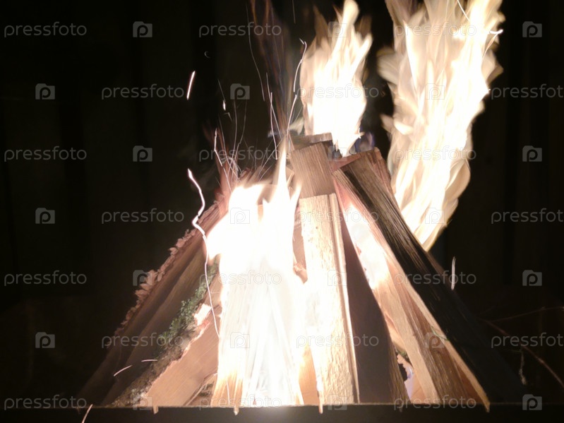 Яркое пламя горящего костра