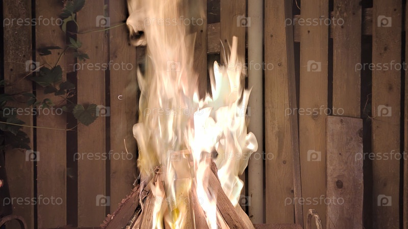 Яркое пламя горящего костра