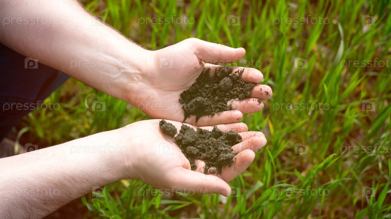 Фермер держит землю в руках