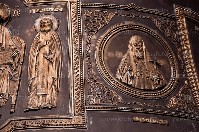 Соборный колокол на стрелке. Патриарх Кирилл, фрагмент «Соборного колокола» в Нижнем Новгороде. Россия, Нижний Новгород, август 2023 г