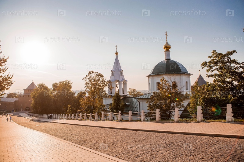 Церковь Симеона Столпника и Белая башня на закате. Нижегородский Кремль. Россия, Нижний Новгород, август 2023 г