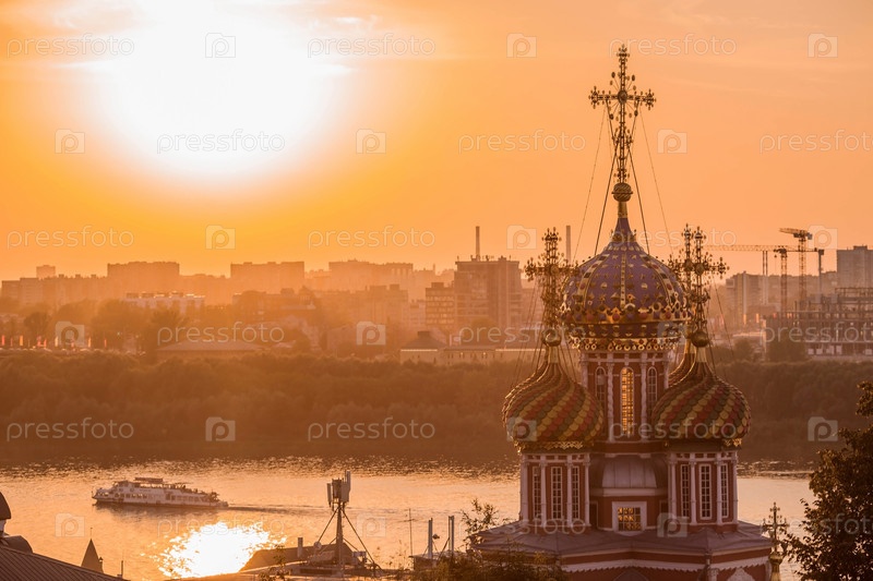 Религия и культура. Церковь Рождества Христова на закате, вид с холма. Россия, Нижний Новгород, август 2023 г