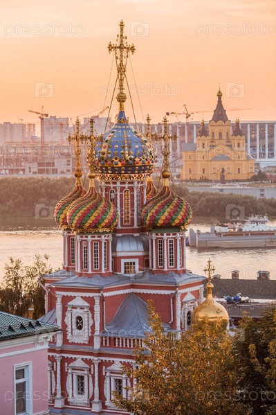 Религия и культура. Церковь Рождества Христова на закате, вид с холма. Россия, Нижний Новгород, август 2023 г