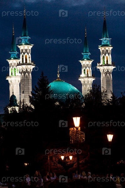 Главная достопримечательность города Казани. Мечеть Кул Шариф ночью. Казанский Кремль. Город Казань, Республика Татарстан, Россия, сентябрь 2023 г