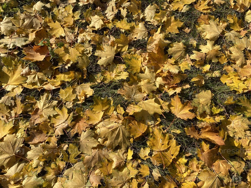 Ковер из желтых кленовых листьев в осенний сухой солнечный день