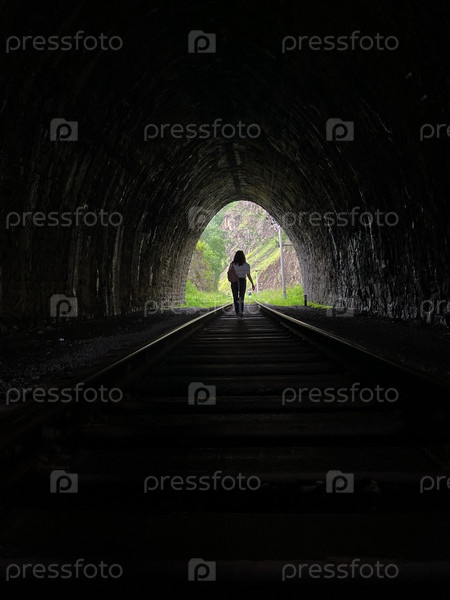 Свет в конце тоннеля, выход из темного железнодорожного тоннеля