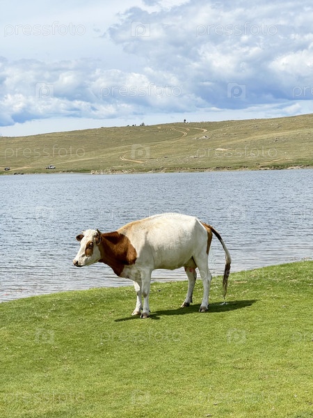Корова гуляет по берегу озера Байкал, Россия