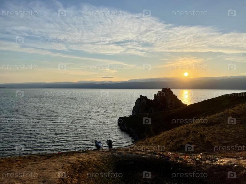Скала Шаманка на острове Ольхон на закате, озеро Байкал, Россия
