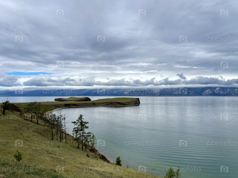 Тяжелые серые облака над озером Байкал, остров Ольхон, Россия