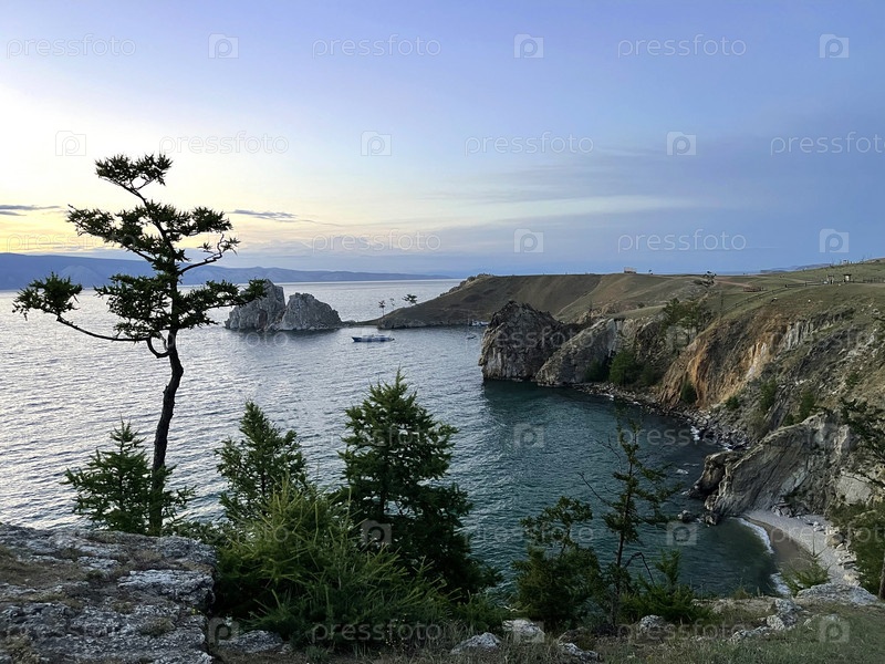 Скала Шаманка на острове Ольхон на закате, озеро Байкал, Россия