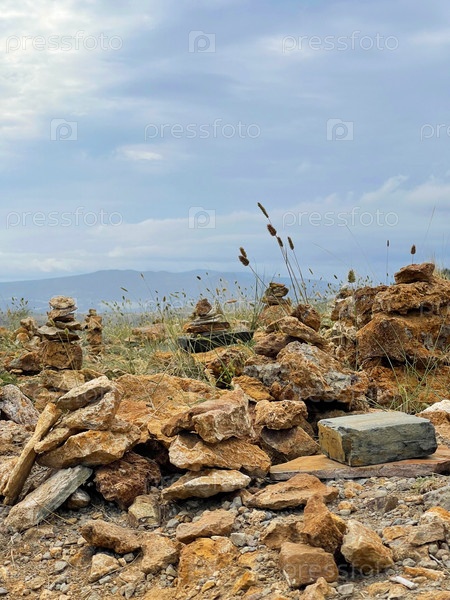 Каменные пирамиды - туры- у озера Байкал. Россия. Концепция баланса и гармонии