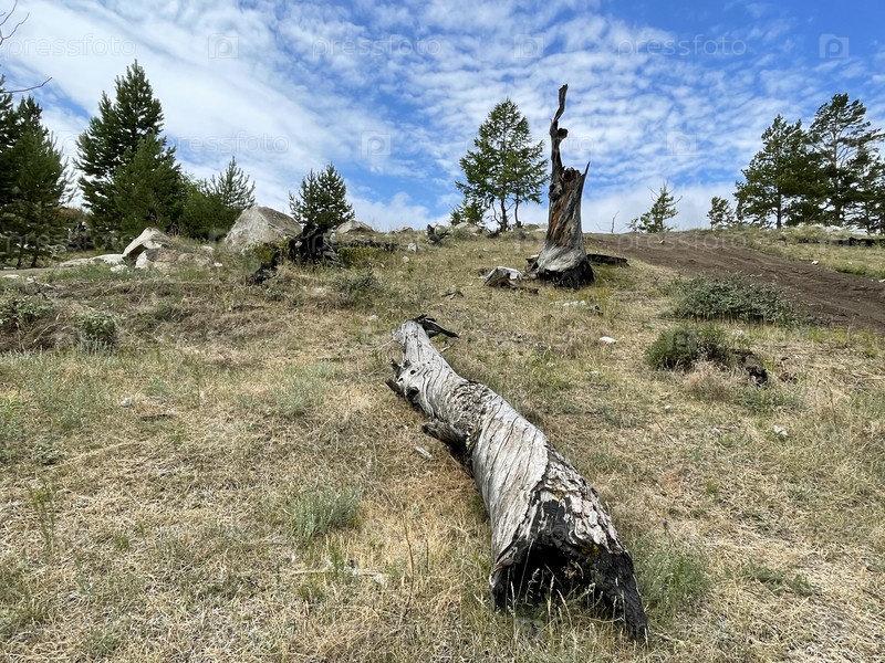 Остатки старого сломанного дерева и бревна возле озера Байкал, Россия