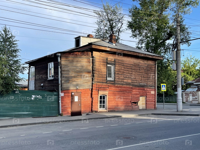 18 июля 2022 г. - Иркутск, Россия: Полуразрушенный деревянный дом в ветхом состоянии, в котором до сих пор живут люди