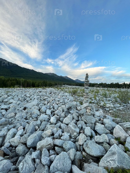 Пирамида из камней на месте схода каменного селя, Саяны, Россия
