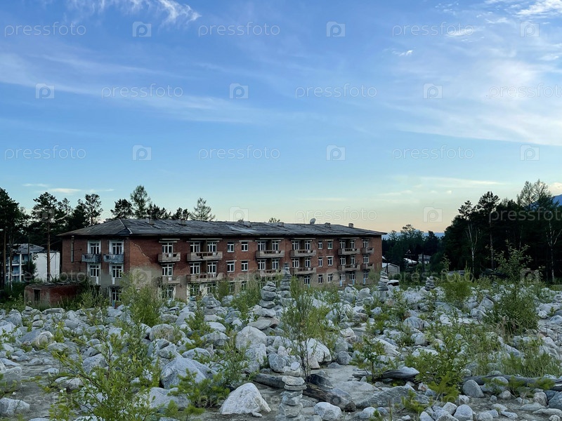 Жилой дом, разрушенный каменной рекой на месте селя, Саян, Россия